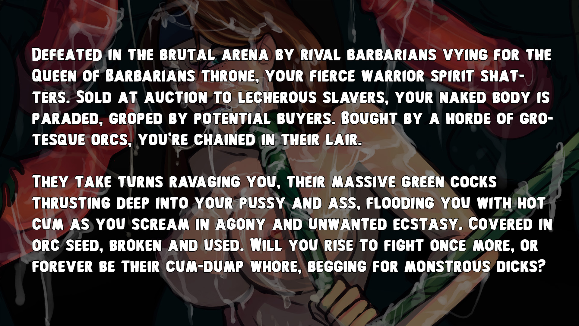 First, let’s remind everyone what this glorious mess is all about: This is a spicy roguelite fighter where you control a badass barbarian babe tearing through arenas full of deadly bitches. Beat them? You get juicy victory scenes and – new twist – you can sell defeated rivals into slavery for cold hard gold. Lose? Well… our heroine gets overwhelmed, captured, and sold off to those ever-horny goblins for some very explicit “bad end” treatment.